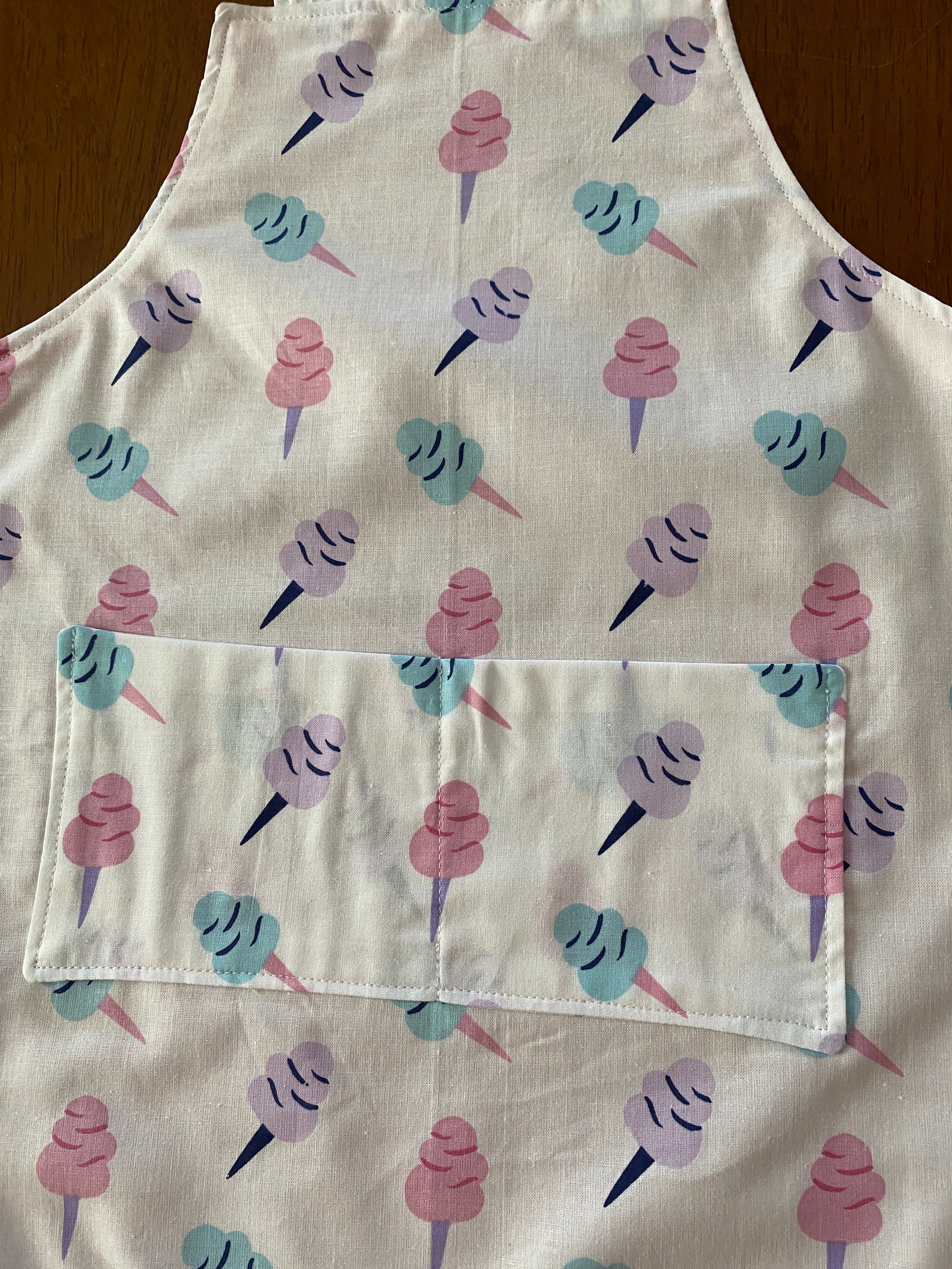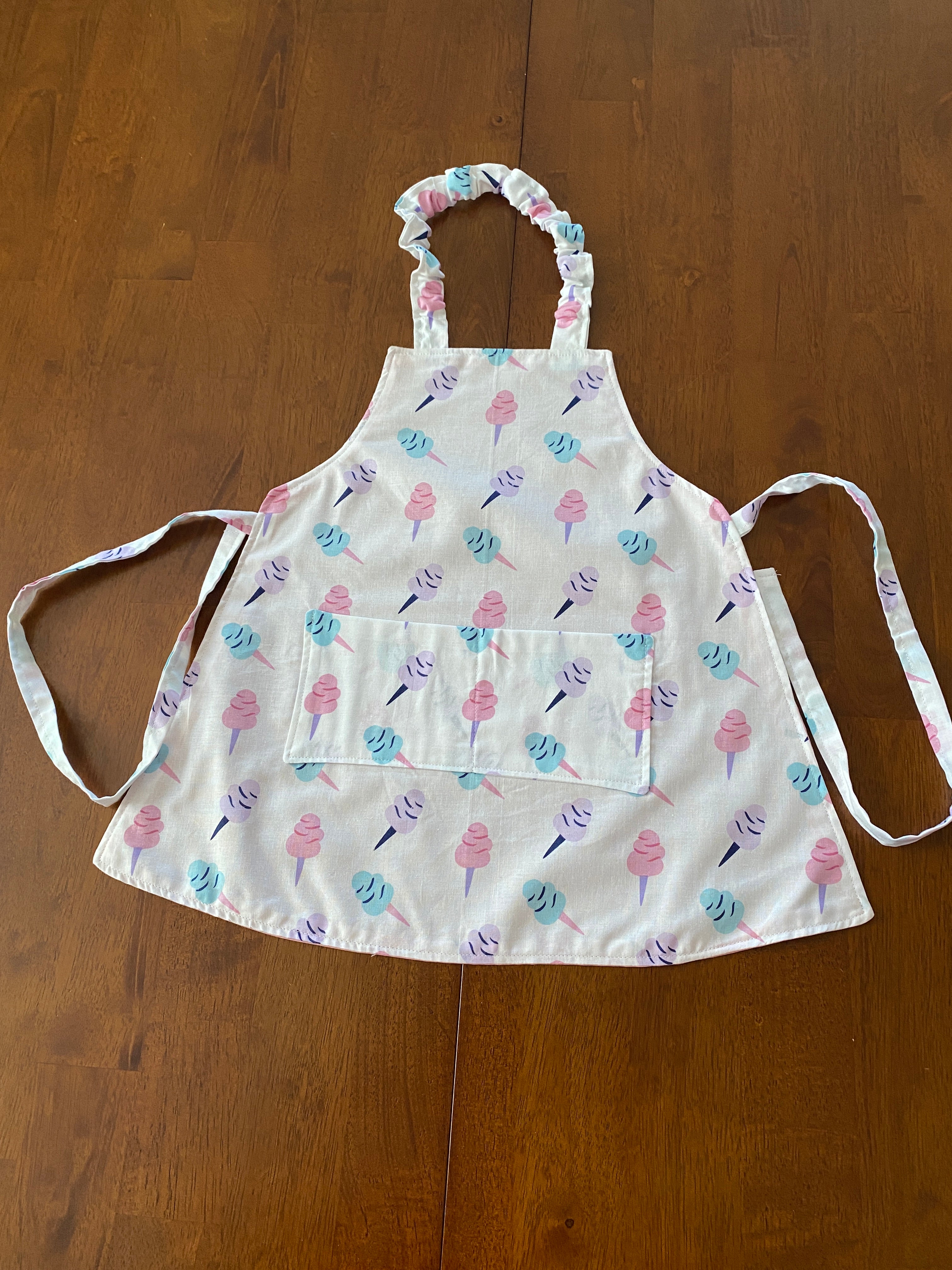 Reversible Child Apron with Pockets Featuring Cotton Candy