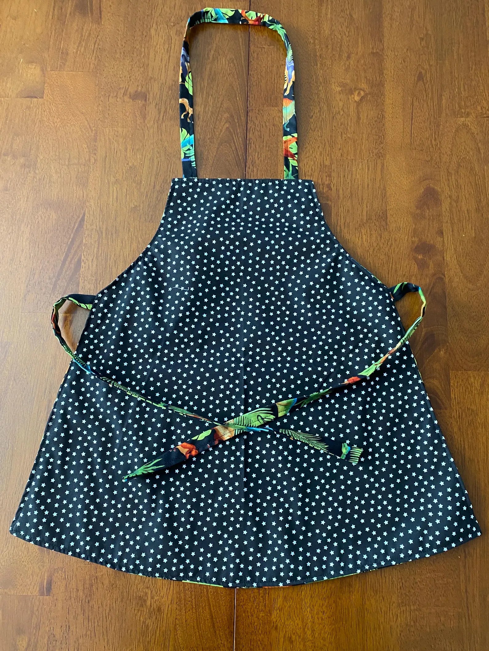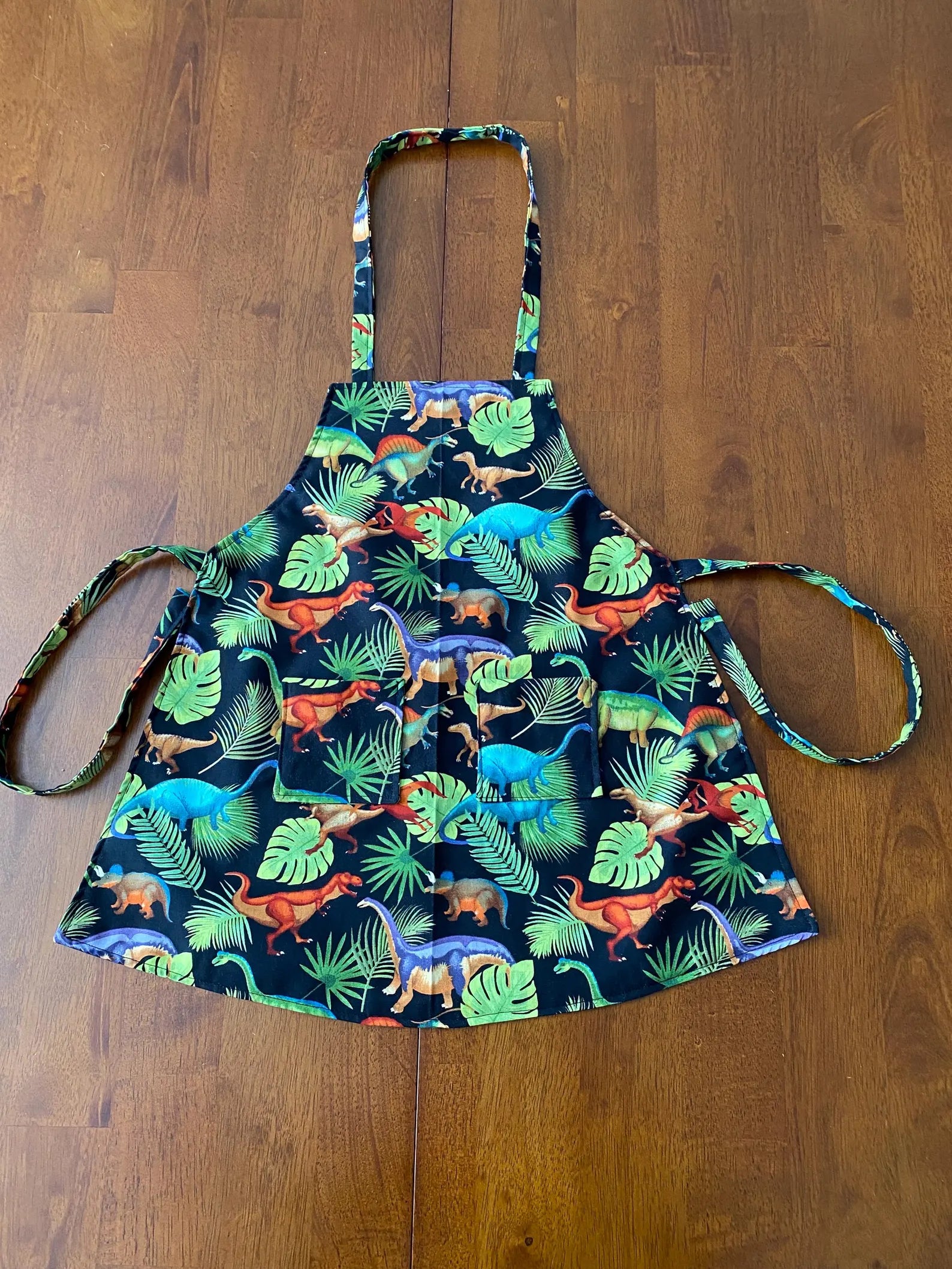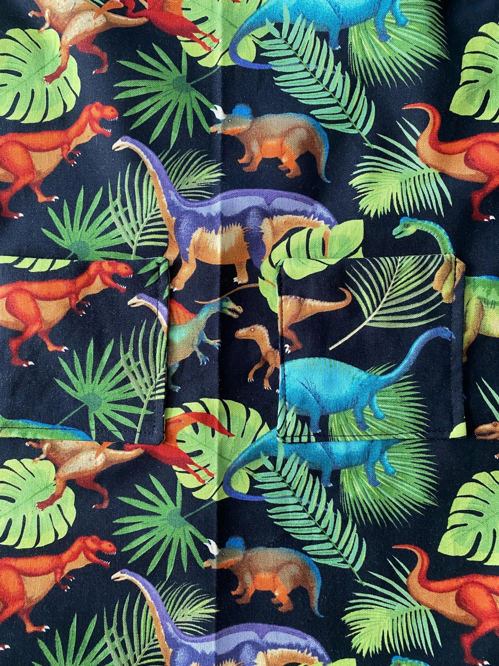 Reversible Child Apron with Pockets Featuring Dinosaurs