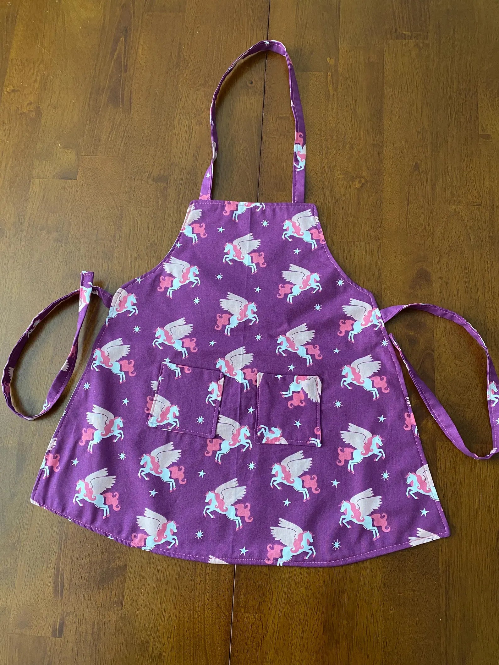 Reversible Child Apron with Pockets Featuring Pegasus