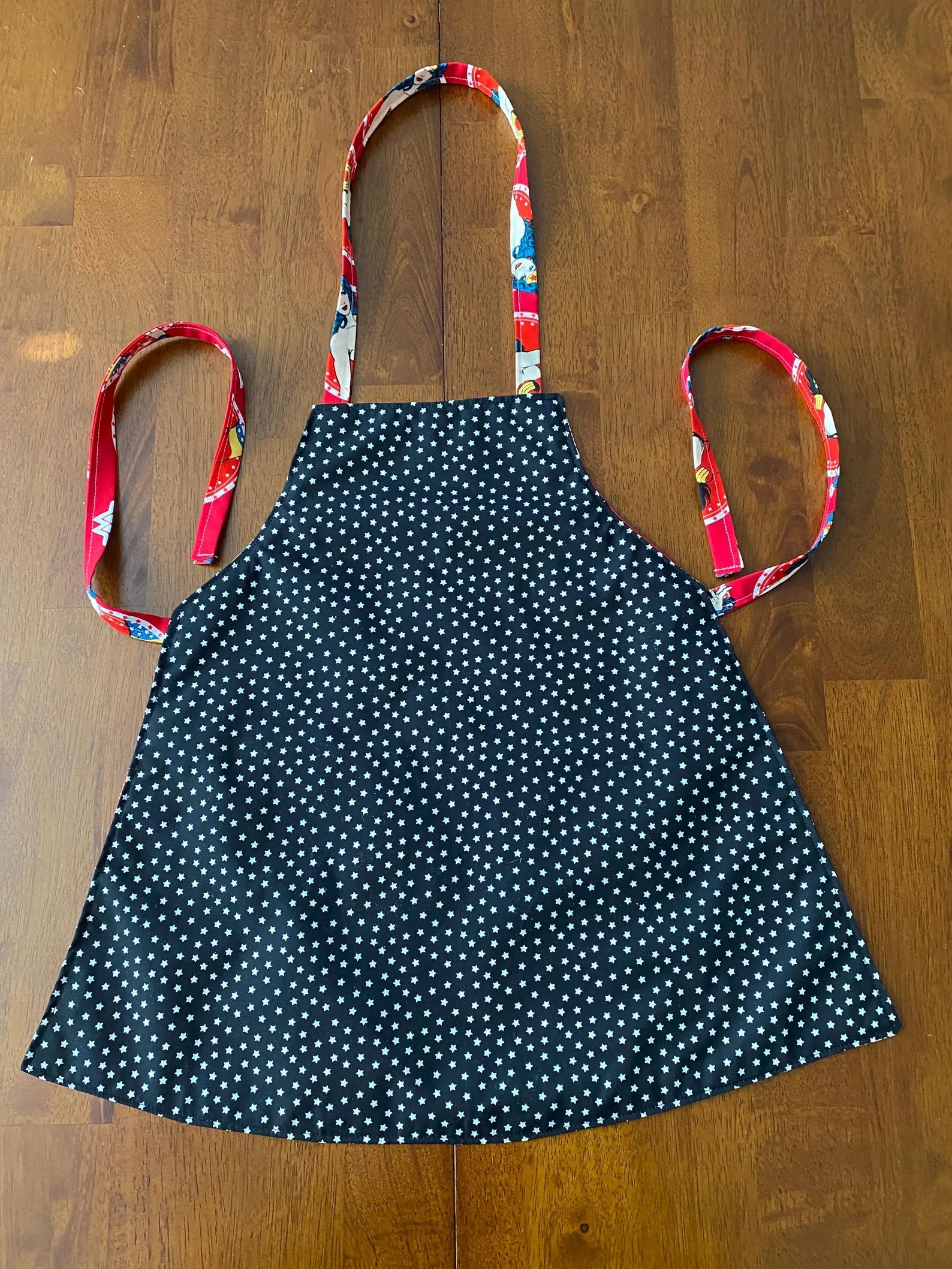 Reversible Child Apron with Pockets Featuring Wonder Women