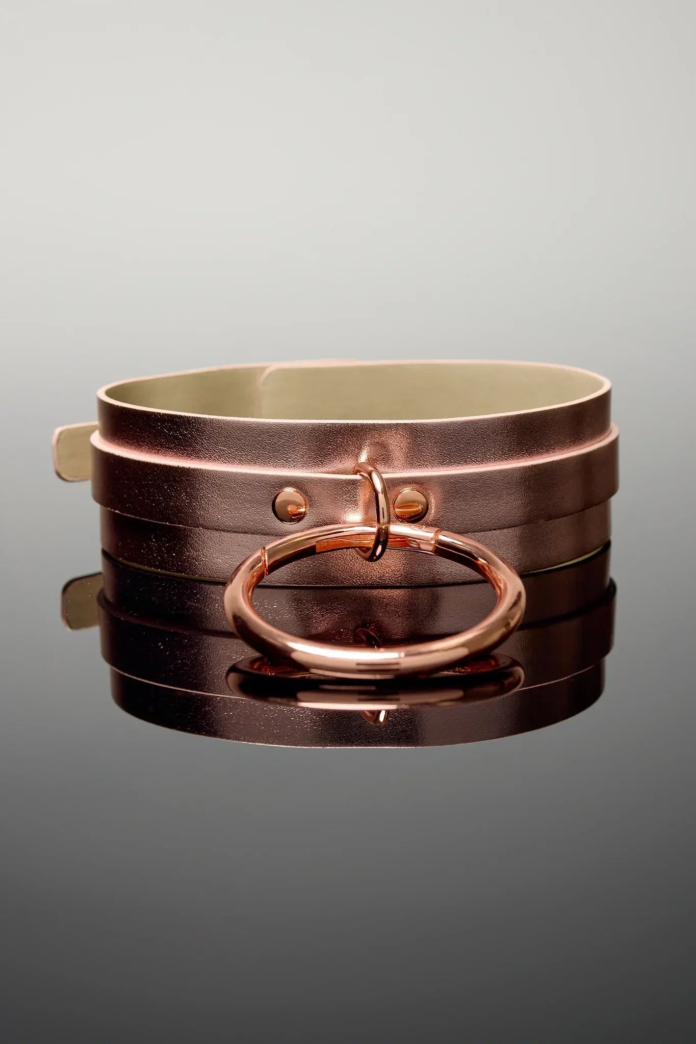 Elevate your lingerie and accessory game with the Coquette 24613 Collar, designed to command attention with its daring edge. Crafted from sleek rose gold pleather accented by bold metal details, this collar features a large versatile opening ring that stands out as both a statement and functional element. Decorative grommets enhance its provocative appeal, while the back metal buckle allows you to tailor the fit for ultimate comfort and style. Subtly embossed with the COQUETTE logo, this piece seamlessly complements bondage lingerie and a variety of other accessories, adding an enticing, confident flair to any ensemble.