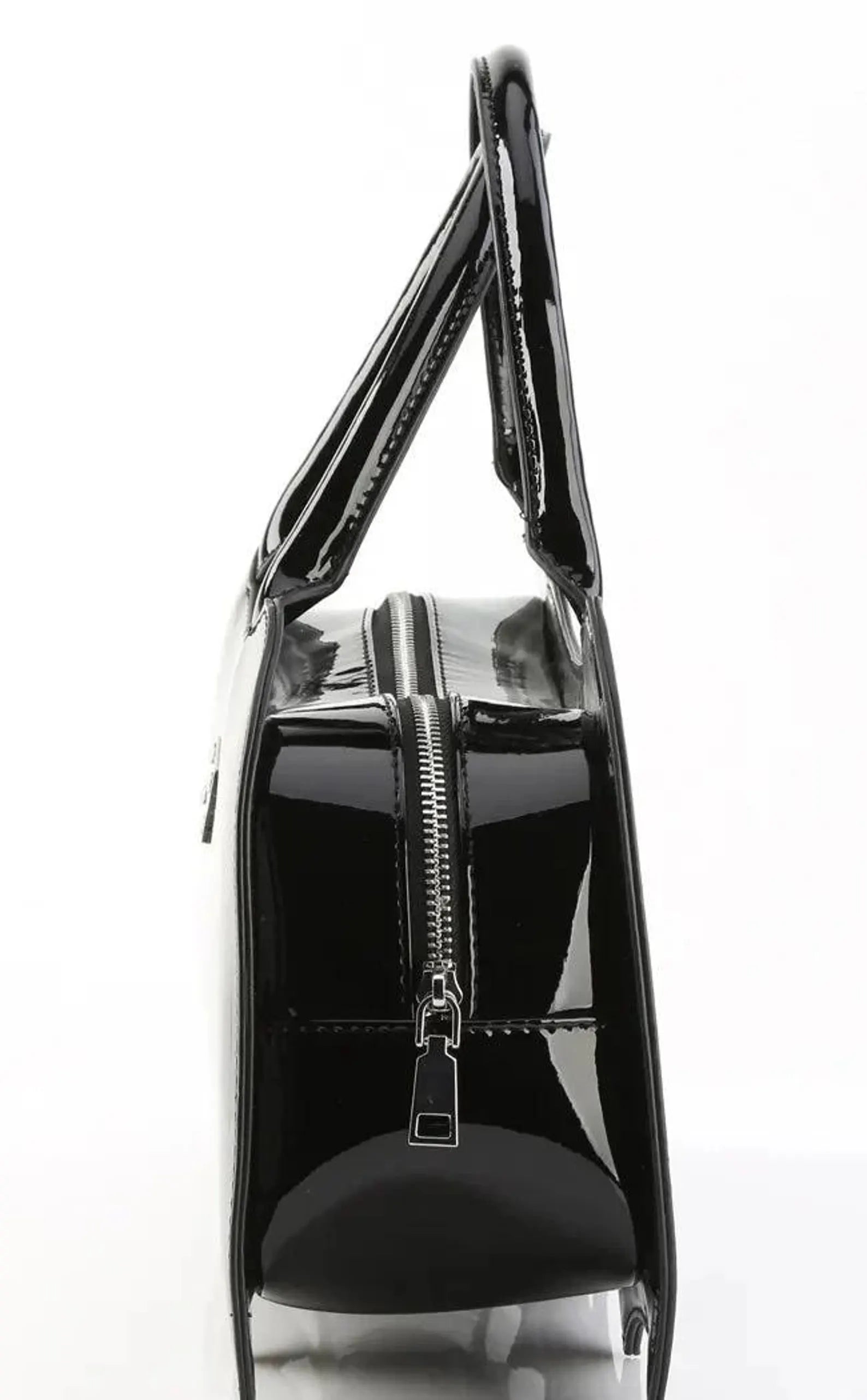 This sweet 'n petite black patent handbag is our new favorite evening out & special occasion bag! This 'lil bag drips with gothic elegance with its subtle bat shape and wing scalloping detail - perfect to be accessorized with a pair of black patent heels and your favorite little black dress.