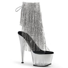 7"(17.75cm) Heel, 2 3/4"(7cm) Platform Open Toe/Heel Back Lace-Up Ankle Boot Featuring 4-Layer Chrome Plated, Simulated Rhinestone Fringe, Inside Zip Closure