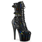7" (178mm) Heel, 2 3/4" (70mm) Platform Lace-Up Front Ankle Boot Featuring Quadruple Cone-Studded Buckle Straps & Fully Wrapped Platform Bottom, Inner Side Zip Closure